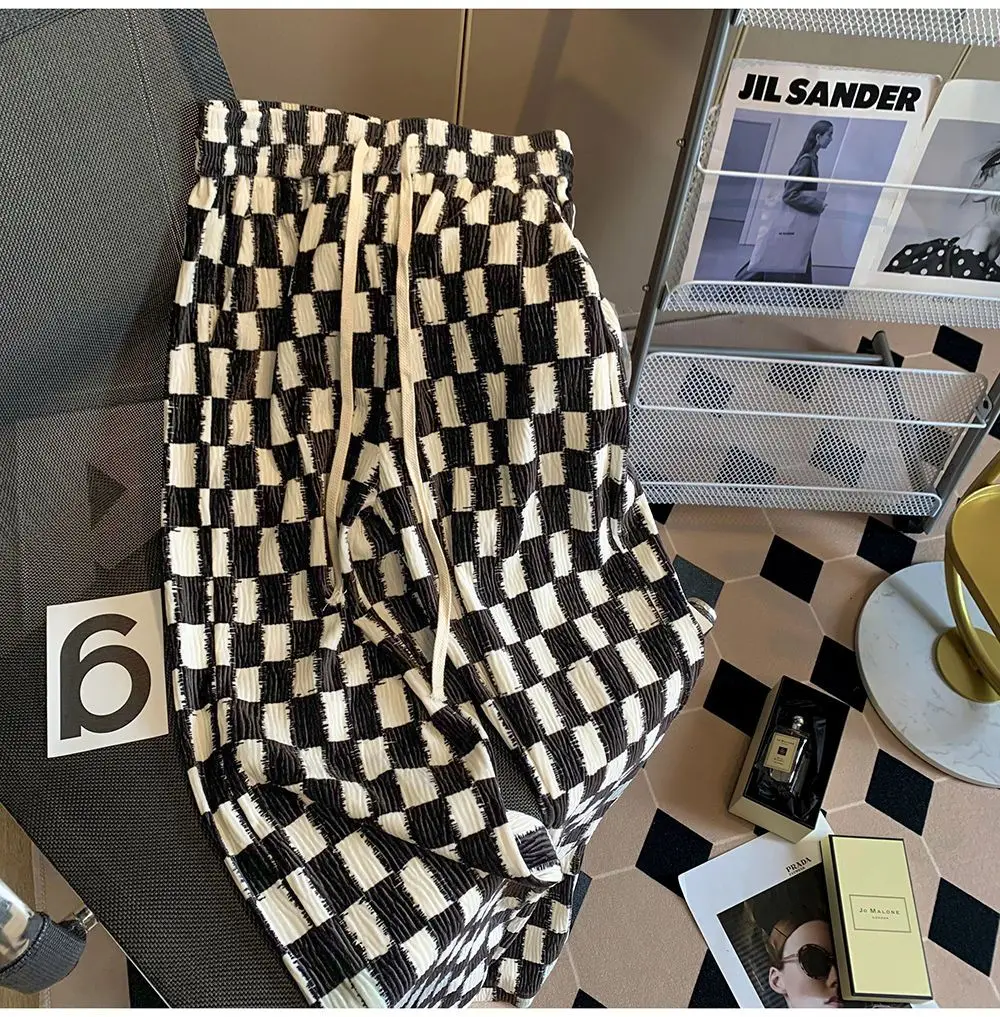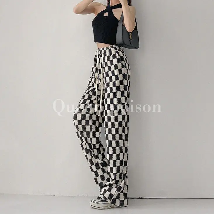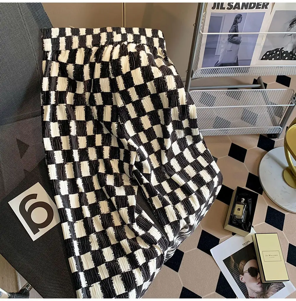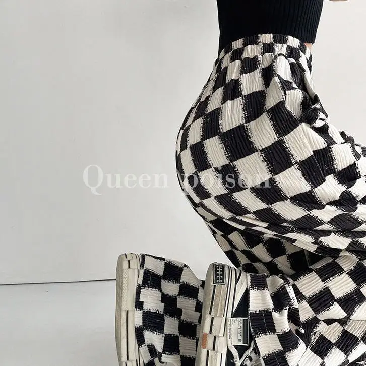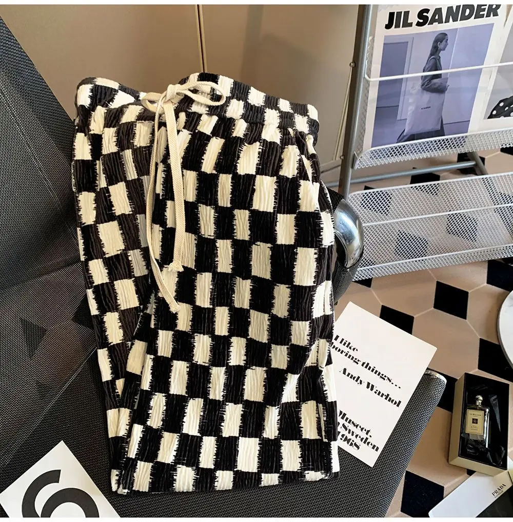 🌼 What is it - Step into style with our Vintage Plaid Pleated Straight Pants! Perfect for Spring and Summer, these trousers feature an elastic waist and drawstring design for ultimate comfort, while the wide-leg cut adds a chic vintage flair to any outfit.